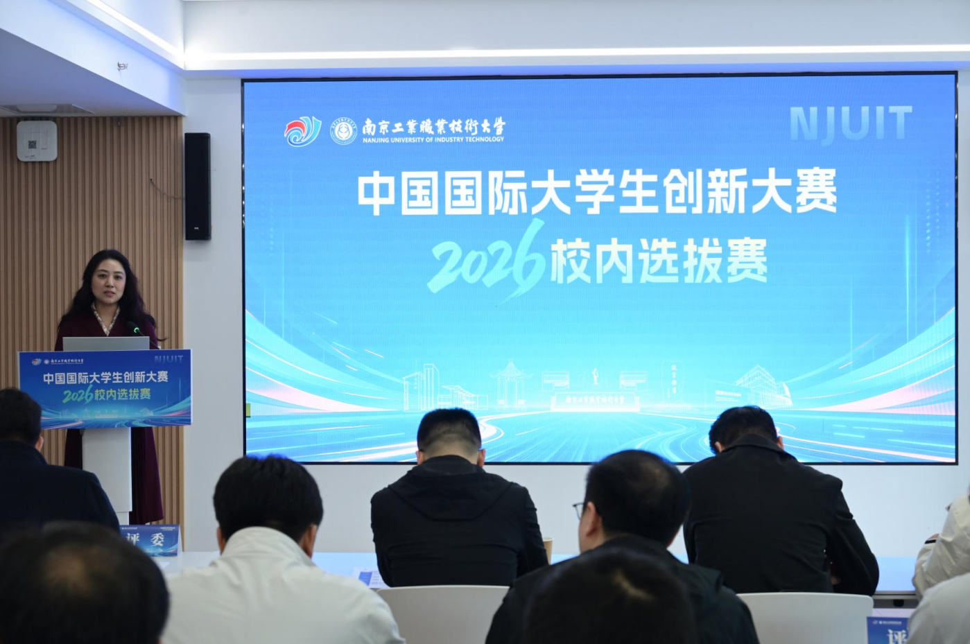 创新引领时代,青春筑梦未来。为深入学习贯彻党的二十大和二十届历次全会精神,落实习近平总书记给中国国际大学生创新大赛参赛学生代表重要回信精神,进一步激发学生创新创业热情,营造“以赛促教、以赛促学、以赛促创”的浓厚育人氛围,4月1日上午,我校在学生社区匠心讲堂隆重举行中国国际大学生创新大赛(2026)校内选拔赛启动仪式。学生工作处处长毛文娟,各学院分管学生工作党委副书记、副院长,赛事评委,各项目团队代表及相关工作人员参加活动。