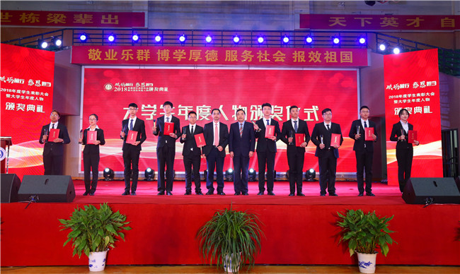 “2018南工院大学生年度人物”颁奖仪式上,副校长霍雄飞宣读了获奖名单并向同学们表示热烈的祝贺。“青春芳华 筑梦远航—2018南工院大学生年度人物事迹展播”视频展现了十位同学在砥砺前行中铺展青春画卷,在感恩担当中引领时代风尚,他们是广大南工院学子在创新创业、技术技能、志愿服务、自强不息、全面发展等领域成长的缩影,引起了在场同学的共鸣,博得了一阵热烈的掌声和喝彩。10位“2018南工院大学生年度人物”一一上台发表获奖感言,并从党委书记吴学敏、优秀校友章升谊手中收获饱含赞许和认可的获奖证书和奖杯。