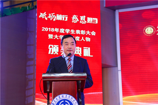 12月12日下午,“砥砺前行 感恩担当”2018年学生表彰大会暨大学生年度人物颁奖典礼在我校体育馆隆重举行。学校党委书记吴学敏,党委副书记苏小冬,纪委书记于林惠,副校长霍雄飞、朱建国,及优秀校友代表出席了大会,学校各职能部门负责人、各二级学院(部、中心)负责人、全体辅导员及2000余名学生相聚一堂,共同见证和庆祝属于南工院学子的荣耀时刻。