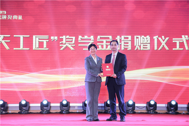 在校友奖学金捐赠及颁奖仪式上,党委副书记苏小冬代表学校接受优秀校友重庆和天机械集团有限公司董事长、机8548章升谊先生的捐赠。南京校友会第三分会代表吴志雄、王长春、蒋燕、赵伟为“思源”优秀学子奖学金获得者颁奖。