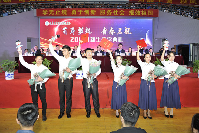 党委委员、副校长霍雄飞教授在主持典礼时,向在场师生通报了我校在第三届中国“互联网+”大学生创新创业大赛取得的佳绩,《非物质文化遗产“翟家大院撕纸”》和《AI无托槽隐形矫治器》两个项目从全国37万个项目中脱颖而出,入围金奖争夺赛,获得银奖,创造了全国高职院校的最佳战绩;《非物质文化遗产“翟家大院撕纸”》还获得了全国唯一一项“专家特别推荐奖”,也是高职院校入选“青年红色筑梦之旅”演讲报告会的唯一项目。