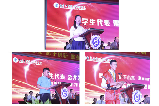 投身志愿服务四年、荣获甘肃省白银市“最美志愿者”、“优秀志愿者”的造价1711班金龙同学作为新生代表发言,他代表全体新生,向母校承诺用理想、追求和担当为中国梦的实现注入强大动力,为母校的百年辉煌奉献力量。来自塔吉克斯坦的汉语1719 班王小木同学代表留学生发言,他代表全体留学生表示尽快融入南工院大家庭,努力学习并为中外友谊做出贡献。