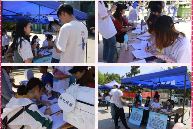 大学生心理健康协会联合商务贸易学院推出的解忧信使活动,“解忧之境”、“碎忧之地”和“时空信封”参与的同学热情十分高涨,解忧铺子的调查问卷参与度达到了300多份,很多同学都在“时空信封”投递了写给未来自己的一封信,届时规定日期取回自己信件时已经完成了自己的心愿。“笑傲江湖”和“你好,陌生人”活动则是让同学们敞开心扉,勇于表达自己,主动和陌生人交谈,结识新朋友,很多同学为自己的突破而感到兴奋不已。