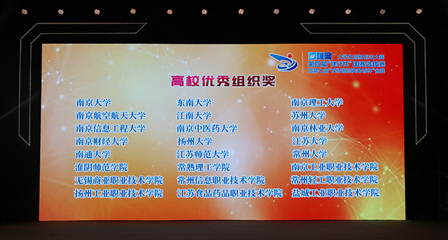 7月18日至21日,第四届江苏省“互联网+”大学生创新创业大赛决赛在南京信息工程大学举行。本次大赛以“勇立时代潮头敢闯会创 扎根中国大地书写人生华章”为主题,共吸引省内134所高校的22331支团队、近9万人次报名参赛,经过各校初赛选送,112支团队进入决赛答辩。经过激烈的答辩评审,我校选送的4个项目获得一等奖2项,二等奖2项,最具网络人气奖2项,学校再次获得“优秀组织奖”!