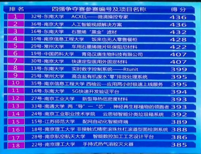 其中我校2013届毕业生云曙先团队“云思顿智能分类垃圾箱系统”在四强争夺赛中与来自南京大学,东南大学,南京信息工程大学等省赛一等奖团队同台竞技,最终以392分的高分位于第14名,为江苏高职院校参赛团队中所取得的最高成绩。