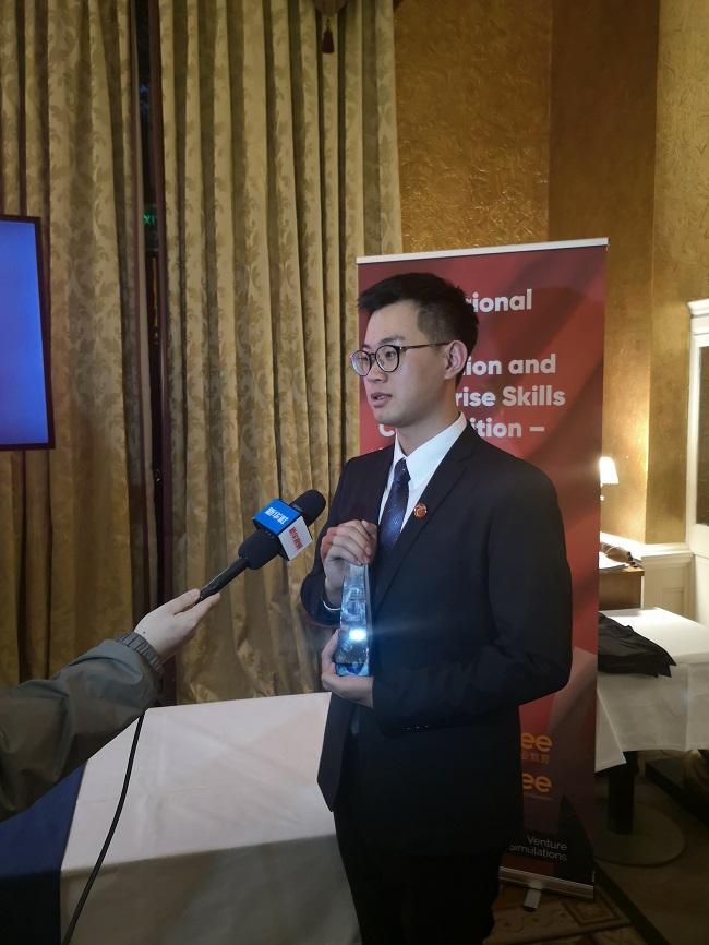 最终,我校参赛团队凭借在市场环境分析、企业模拟运营和演讲汇报等环节的出彩表现,成为16支参赛队伍中最高分获得者,继第一届大赛摘得杰出院校奖后再次夺得大赛最高奖项——杰出成就奖。中国驻英国大使馆教育处王永利公参为获奖团队颁奖。秦社华老师、谈璐老师分别获得杰出教师奖。