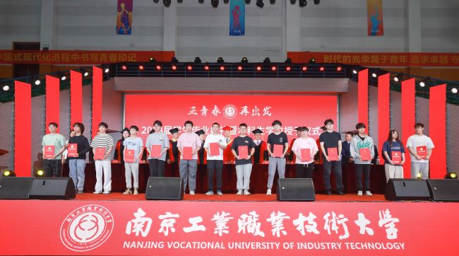 马成荣宣读学校《2024届优秀毕业生表彰决定》。他希望受表彰的毕业生珍惜荣誉、再接再厉、再铸辉煌,继续为母校增光添彩,也希望全体毕业生以先进为榜样,踔厉奋发,拼搏奋斗,在推进强国建设、民族复兴伟业中展现青春作为、彰显青春风采、贡献青春力量。全体与会校领导为优秀毕业生代表颁发荣誉证书。