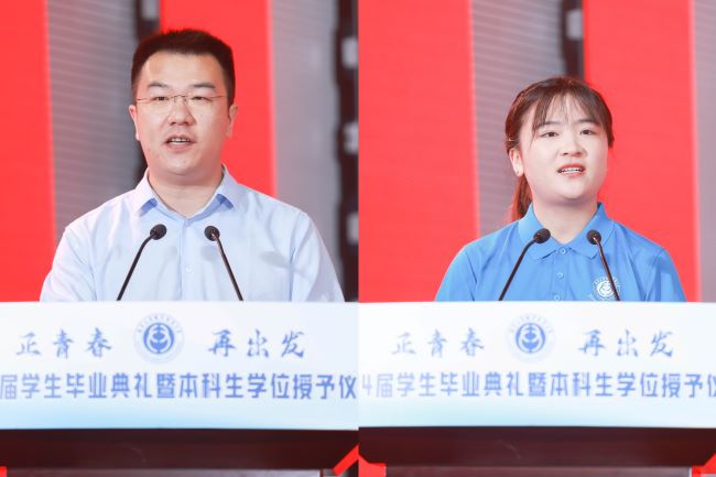 苏适和王茹作为师生代表发言