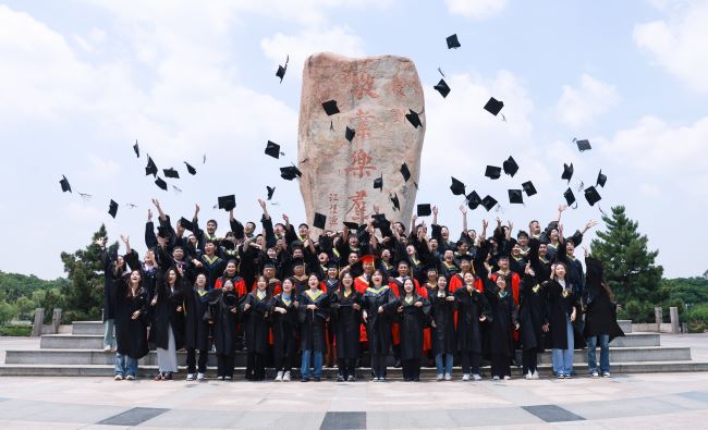 学士学位授予仪式上,全体与会校领导为本科毕业生拨穗送行、颁发学士学位证书并合影留念。本次获得学士学位的还有15名南非政府师资培养项目的来华留学生,这也是我校第一批获得学士学位的留学生。