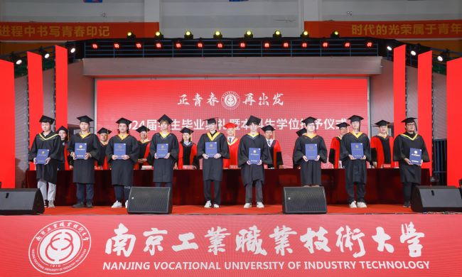 毕业生代表电气工程学院王茹表达了对师长们的感谢和对未来的展望,她表示在南工的温暖回忆将转化为大家继续前行的底气和勇气,激励大家在新征程上努力拼搏、奋勇争先,续写更加精彩的南工故事。