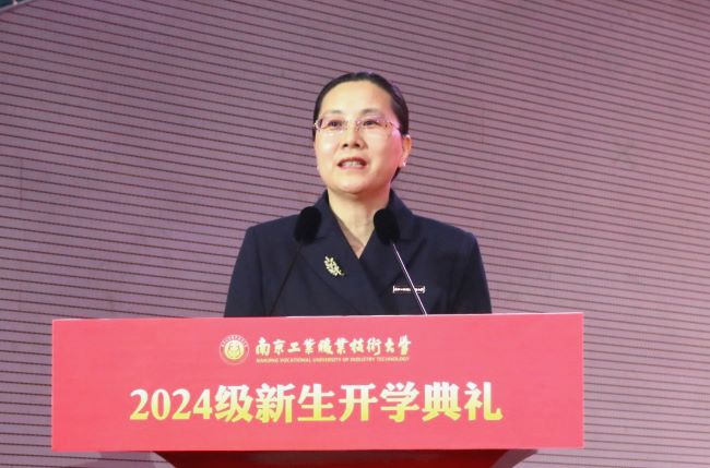 党委常委、副校长魏萍主持开学典礼。她希望全体新生秉持南工“敬业乐群”的校训,继承南工人敢为人先、责先利后的优良品质,与学校同发展、共成长、齐奋进,不负青春,不负时代,以笃学报家国,以奋进致青春,用技能报国为伟大祖国注入磅礴力量。
